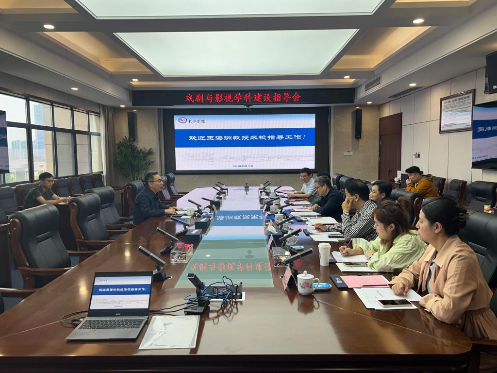 王海洲教授对我校戏剧与影视学科建设取得的成绩表示祝贺,并对戏剧与影视学科建设和未来发展方向提出指导性意见。他指出,学校应当深入研究教育部颁布的最新专业简介与培养要求,确保戏剧与影视研究生教学计划和培养方案能够契合最新的政策导向。他强调,要突出学科交叉融合,形成鲜明学科特色,要深化学术与创作成果、加强学生作品创作及参赛获奖等。他表示,未来应充分利用省、市、学校的高度重视和支持,稳扎稳打、同心协力将戏剧与影视学科推向更高水平。