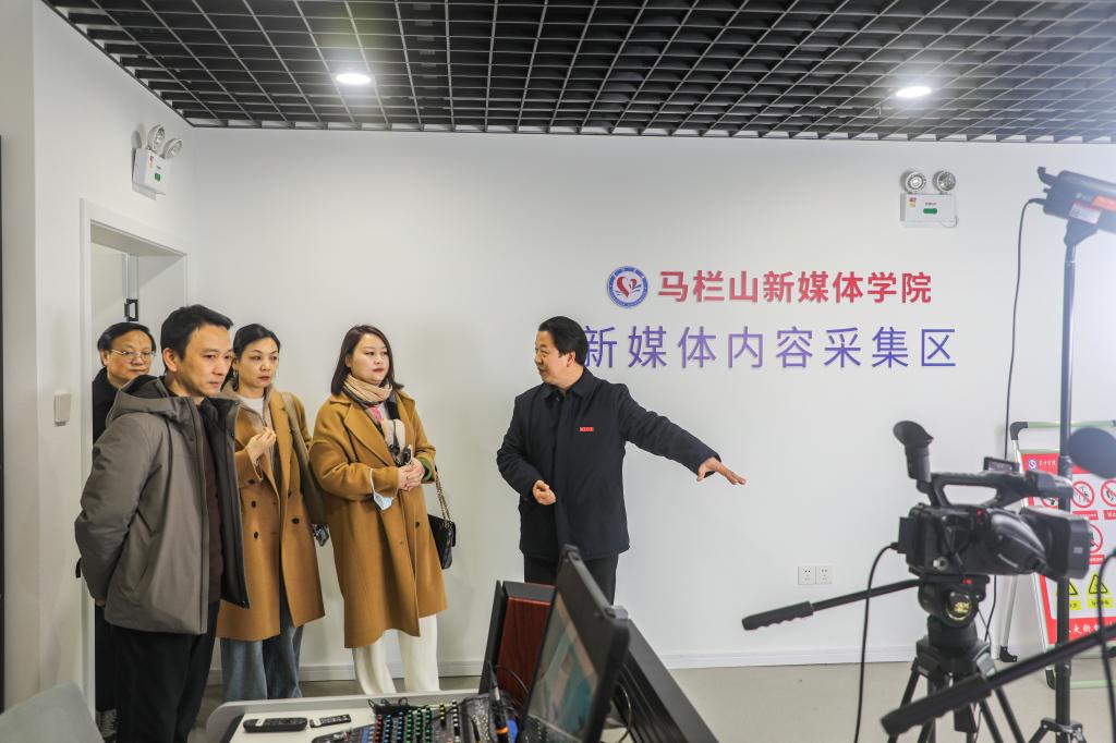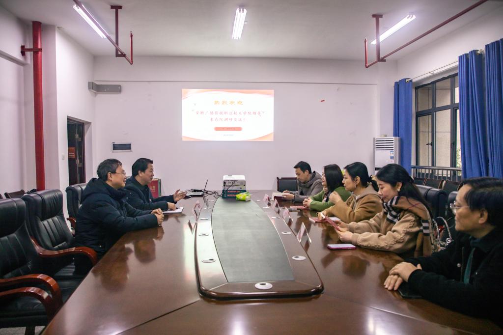 3月5日上午,安徽广播影视职业技术学院播音主持与影视学院副院长仰亮、新闻学院副院长吕艳、艺术设计学院副院长胡雷钢、教务处校企合作办负责人张伟伟一行来到我院考察交流,我院党总支书记徐长梅、学校教务处副处长王川、副院长荣斌等接待了来访客人,并详细介绍了学院近年来的发展情况和未来规划。