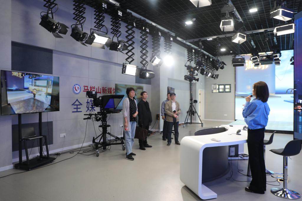龙运荣一行参观了我院全媒体实验实训中心、短视频工厂、演播大厅等教学实训基地,对我院的教学设施和实践教学水平给予了高度的评价。他表示,传媒学院要紧跟时代发展,不断创新教育理念和教学模式,培养适应社会需求的高素质传媒人才。