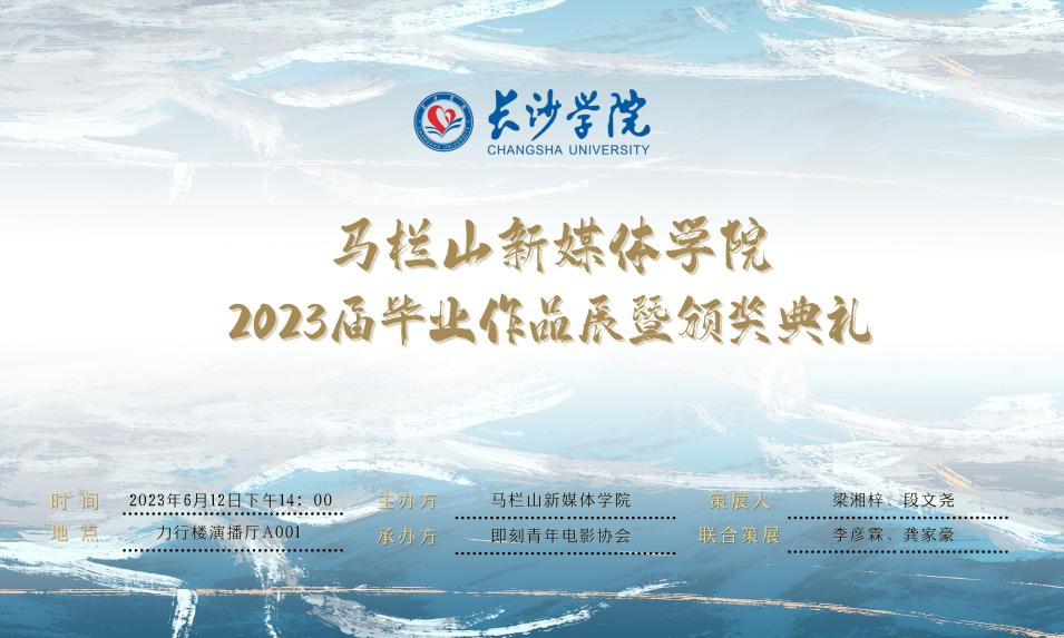 2023年6月12日,马栏山新媒体学院2023届毕业作品展暨颁奖典礼在力行楼演播厅举行。马栏山新媒体学院党总支书记徐长梅、院长黄柏青、副书记叶佳、副院长荣斌、张乃午及各专业教师代表参加了此次活动。