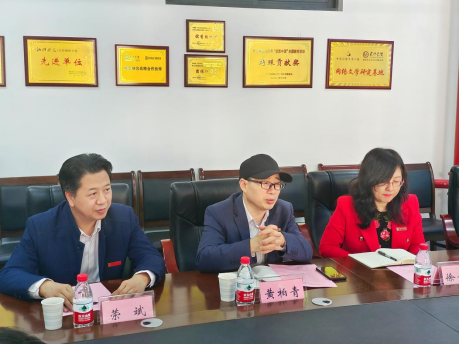 高颖副总监对江西广播电视台的创新创业项目发展现状进行介绍,双方就如何高效地将人才培养、就业实训、行业需求等环节进行紧密结合进行深入交流。湖南智创未来教育科技有限公司董事长成忠对我院校企合作的发展情况进行了解,双方就产教融合的实效如何在江西落地进行讨论。徐长梅书记对合作机制、双方诉求等方面的问题进行解答,同时对校企合作的探索进行介绍。