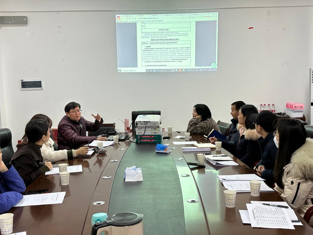此次指导会分为两个阶段。会议第一阶段,向教授结合优秀案例,就课题选题、研究对象、研究框架、研究基础等方面提出指导性意见,并指出申报书中的语言表达、格式规范等注意事项。会议第二阶段,向教授对2023年度的项目申报书进行了一对一论证、指导,从优化项目选题、明晰研究框架、突出研究亮点等方面提出意见和建议。打磨会结束后,申报教师纷纷表示此次打磨会对他们帮助很大,增强了申报信心,明确了申报方向,接下来将按照指导意见继续修改申报书。