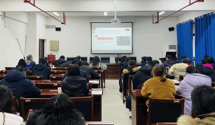 1月14日下午,我校党委委员、副校长张世英在力行楼A219为马栏山新媒体学院及艺术设计学院全体教师党员宣讲党的十九届六中全会精神。