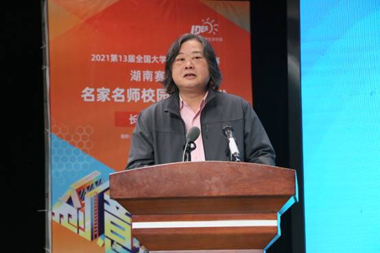 随后,湖南师范大学王战教授作赛事指导。他重点讲解了今年的参赛规则、参赛类别、具体流程、评选规则,并鼓励同学们通过新媒体进行创作。