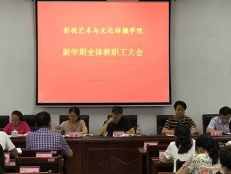 9月4日上午,新学期我院教职工大会于力行楼A219会议室召开。院长黄柏青、书记胡嫔、副院长荣斌、谭文鑫,副书记王艾红及全体教职员工出席会议。