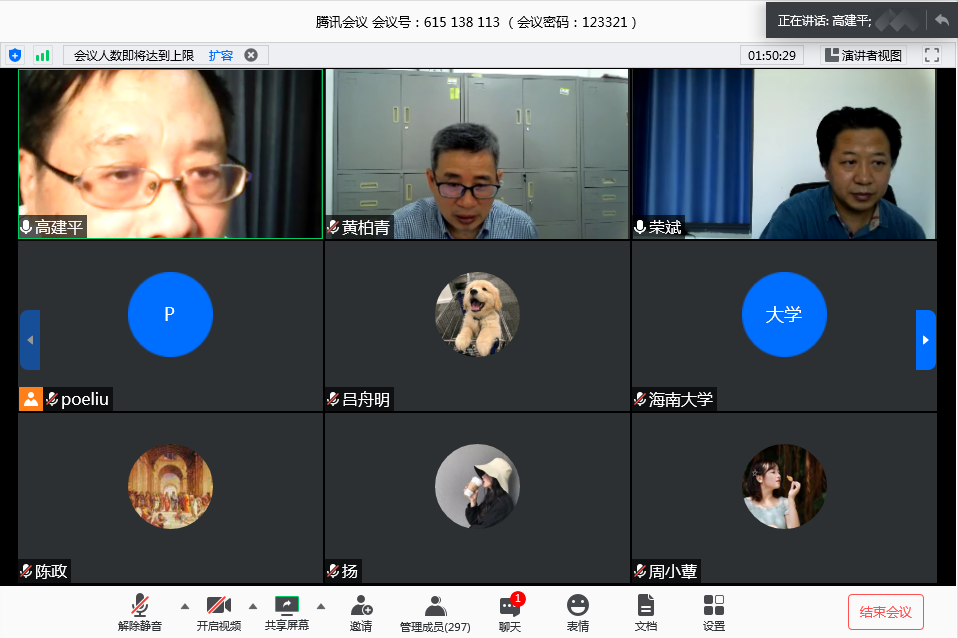 黄柏青院长代表全院师生向高建平老师表示感谢,并希望疫情结束后,有机会再请高老师亲临学院讲学。在腾讯会议“云”端,讲座在热烈的掌声中圆满结束。