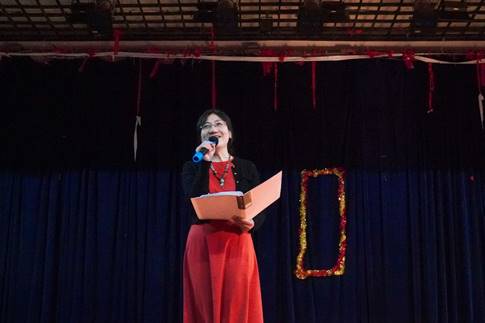 活动开始前,胡嫔书记上台致辞。她表示,很高兴能够看到各支部积极筹备节目,并且对各团支部准备的节目充满期待。随后,由19级编导2班带来的《沉浮70》拉开晚会帷幕。