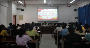 会上,学院领导班子全体成员根据此前集中学习的成果分别做了主题发言。其中,总支书记胡嫔分别从如何理解初心,怎样坚守初心和怎样坚定理想信念分享了自己的学习心得。她认为坚定理想信念,要牢记党的宗旨,坚持立德树人,做学生合格的引路人,喜欢的知识传授人,亲近的知心人,要以德立身,以德立学,以德立教,做党和人民的好教师。随后,院长黄柏青也做了“牢记使命,勇于担当,推动学院又好又快发展”的主题发言。他认为开展“不忘初心、牢记使命”主题教育,是深化习近平新时代中国特色社会主义思想理论武装的迫切需要,是推进新时代党的建设的迫切需要,是保持党同人民群众血肉联系的迫切需要,是实现党的十九大确定的目标任务的迫切需要。学院和全体教师党员都要借此次主题教育活动的东风,紧密结合各项工作,推动学院各项工作顺利开展。会议中,党总支副书记王艾红,副院长荣斌、谭文鑫也都结合自身工作和学习体会做了分享。