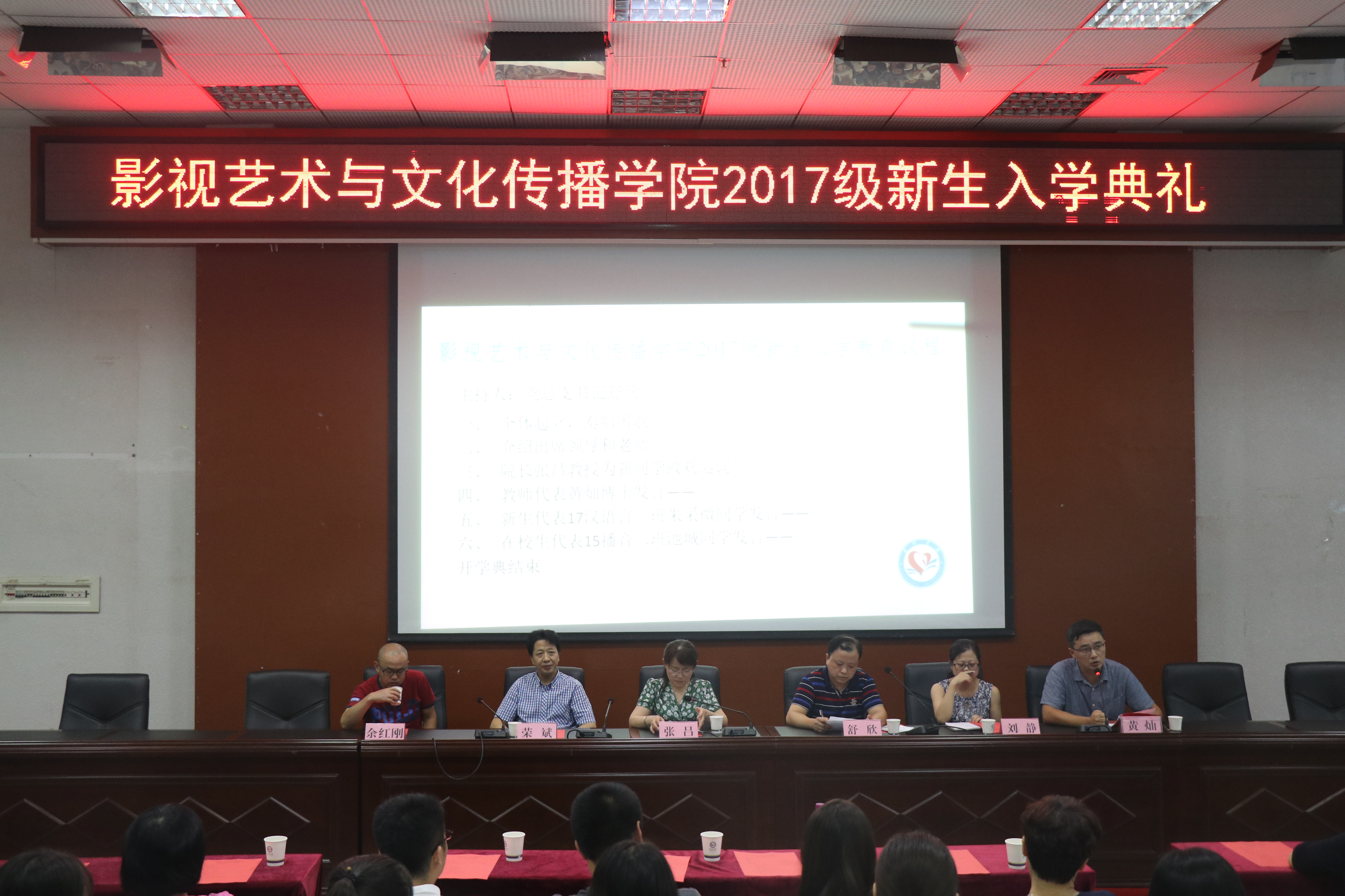 (文字:赵雨 摄影:潘利娜 黄铭)9月11日下午,影视艺术与文化传播学院2017级新生开学典礼在学术报告厅隆重举行。院长张吕、党总支书记舒欣、副院长荣斌、党总支副书记刘静、各教研室主任、新生黄铭班主任以及各年级辅导员出席了此次典礼。开学典礼由舒欣书记主持。