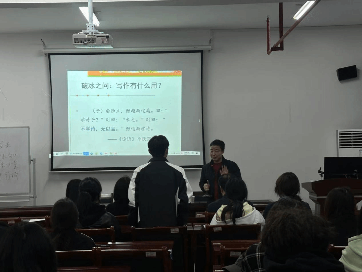 第二维度,创意写作的底蕴是人文。晏教授强调,深厚的文脉根基是创意写作的土壤。他为同学们勾勒了一条从《四书》《红楼梦》到鲁迅、沈从文,再到莎士比亚、罗曼·罗兰的经典阅读路径,鼓励大家“背靠一座图书馆”,让写作拥有坚实的文化支撑。