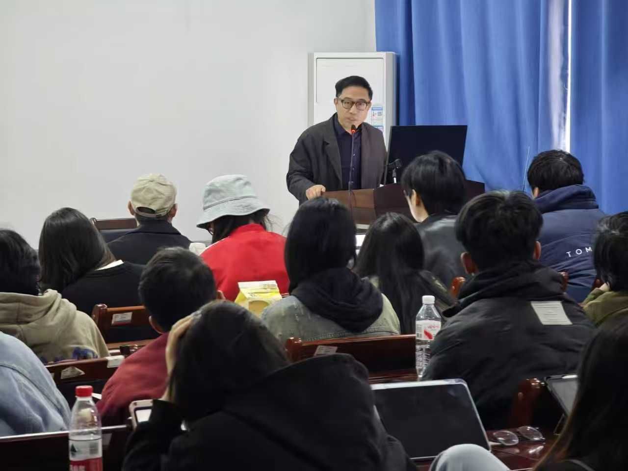 2025年12月1日上午,长沙学院研究生课堂迎来了一场别开生面的行业分享。潇湘电影集团艺术委员会专职副主任,一级文学编辑;湖南省委宣传部电影局、腾讯重点项目审核专家,教育部研究生教育评估专家,多所高校客座教授;中国作家协会、中国电影家协会会员杨蔚然应邀走进校园,以《中国故事席卷全球,AI颠覆创作,短视频狂奔》为主题,为在场学子带来了一场兼具前沿视野与实践启发的精彩讲座。马栏山新媒体学院院长黄柏青教授主持讲座,2025级戏剧与影视专业硕士研究生共同参与。
