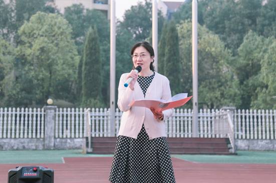 仪式分为四项议程。首先是升国旗并奏唱国歌,国旗护卫队队员们迈着矫健整齐的步伐护送鲜艳的五星红旗缓缓走来。当雄伟庄严的国歌奏响,五星红旗冉冉升起,伴随着日出,迎风飘扬,全体师生向国旗行注目礼。随后,胡嫔书记做国旗下讲话,她在讲话中结合祖国壮丽70年,勉励同学们在今后的工作学习中凝心聚力,改革创新,奋发作为,践行新思想,奋斗新时代,并对同学们的未来和影传院的明天给予了美好的憧憬和期待。