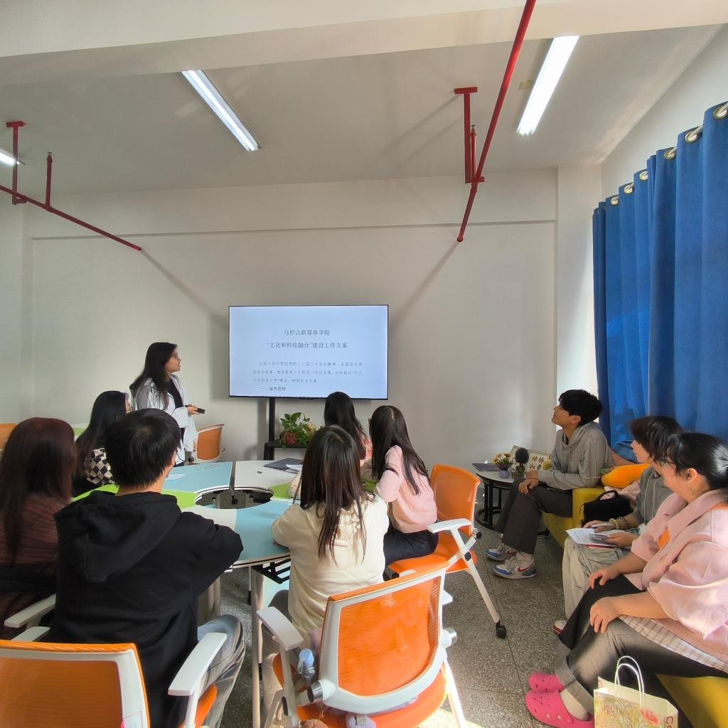 为了让学生支部党员们更加清晰了解学院未来发展,支部书记盛洁还跟在场党员详细介绍了我院《“文化和科技融合”建设工作方案》,她鼓励大家从点滴做起,勇于承担起属于自己的那份责任,用实际行动支持学院的各项事业发展。