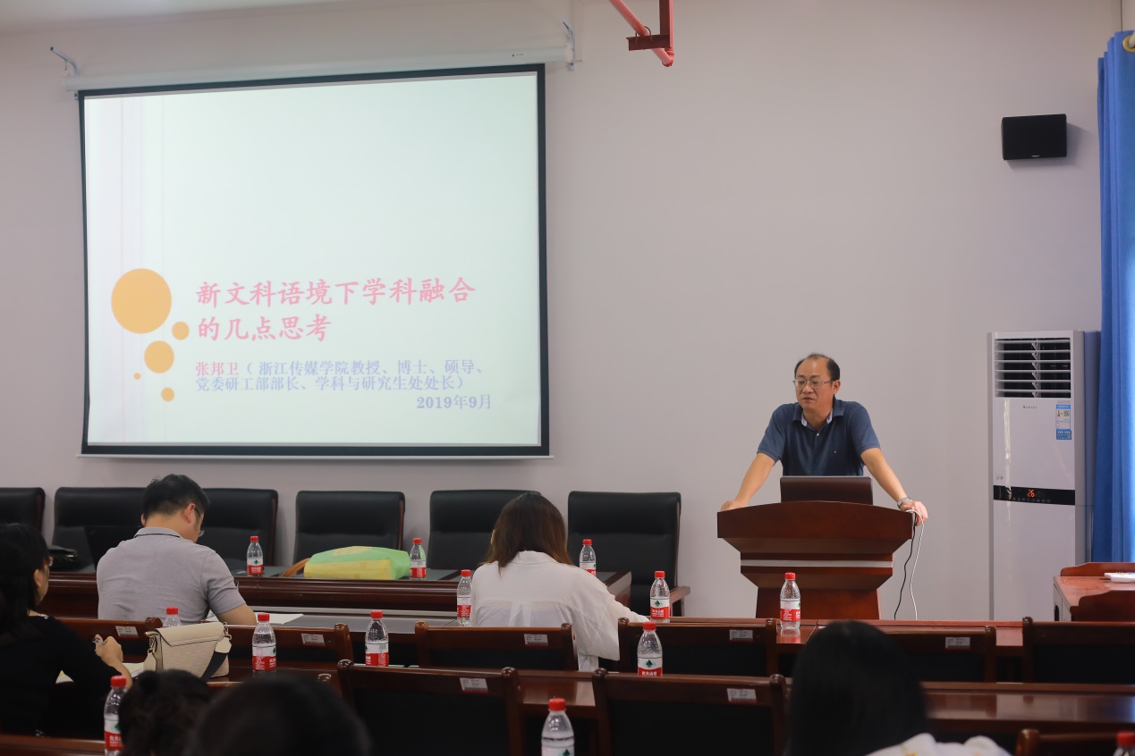 9月3日下午4:00,受长沙学院影视艺术与文化传播学院邀请,浙江传媒学院党委研工部部长、学科建设与研究生管理处处长、硕士研究生导师张邦卫教授为相关专业的教师作了题为“新文科语境下学科融合的几点思考”的学术讲座,该讲座在我校力行楼A219报告厅顺利召开,黄柏青院长主持了此次会议。