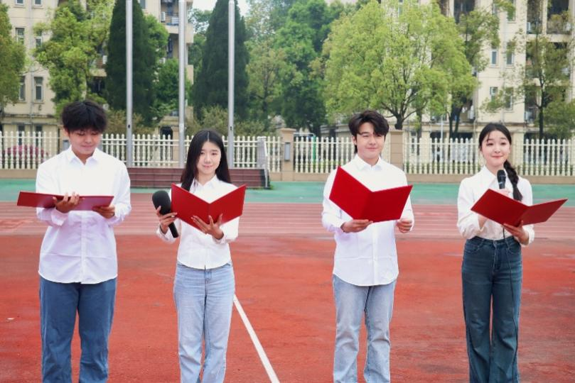 尤胜浩、沈昕言、周苏阳、李成峰四位同学带来主题朗诵《青春·英雄》,他们用深情的朗诵展现了青年的担当与使命,激励同学们像英雄一样为时代奋斗。