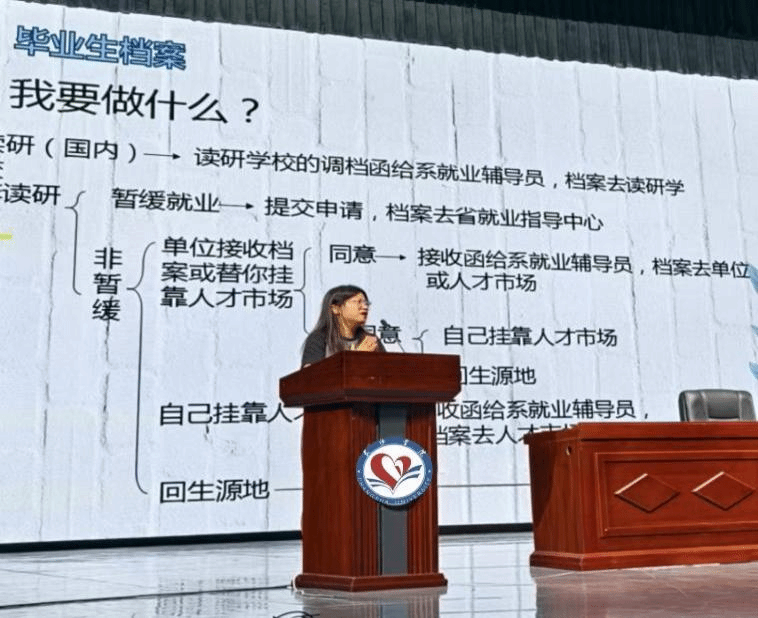 会议的第二部分,2022级辅导员盛洁围绕“时间”与“流程”为同学们作就业实务指导。她系统梳理了毕业生应重点把握的秋招、春招等就业“黄金时间点”,提醒同学们密切关注招聘信息,避免错过关键节点。同时,她详细说明了就业协议签订、档案转递、毕业手续办理等必备事项,强调要提前准备材料、及时与学院沟通。她还介绍了学校就业服务平台及各类咨询渠道,鼓励同学们善用资源、主动出击,稳扎稳打走好毕业季的每一程。
