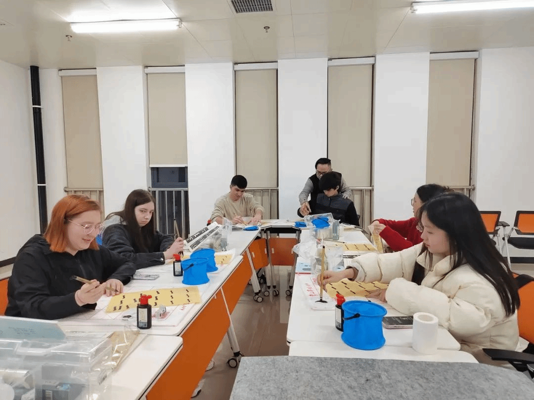 为更好地弘扬中国传统文化,丰富留学生校园文化生活,3月7日,由国际交流处和马栏山新媒体学院联合开设的《中国书画》课程在图书馆3003研讨室正式开讲。国家二级美术师卿旭峰担任授课老师,马栏山新媒体学院袁慧担任课程管理老师,我校来自俄罗斯、塔吉克斯坦、越南等国家的十余名留学生参加。