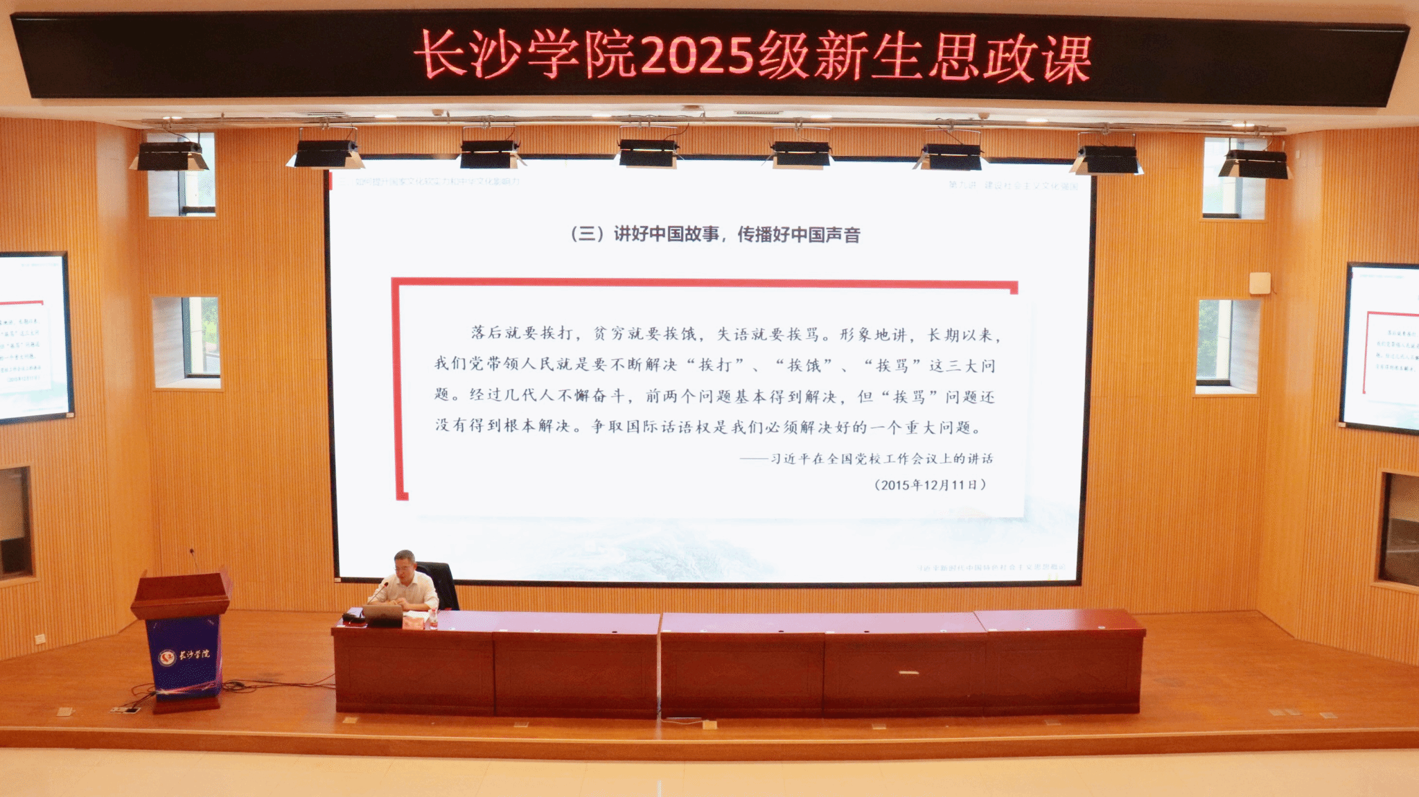 秋风拂晓,征程新启。2025年9月25日下午,长沙学院2025级新生思政课在图书馆二楼报告厅开讲,本次思政课由长沙学院党委委员、副校长张世英主讲,马栏山新媒体学院、艺术设计学院、材料与环境工程学院书记、院长等领导以及三院新生共同参加,为2025级新生点亮大学思想灯塔。