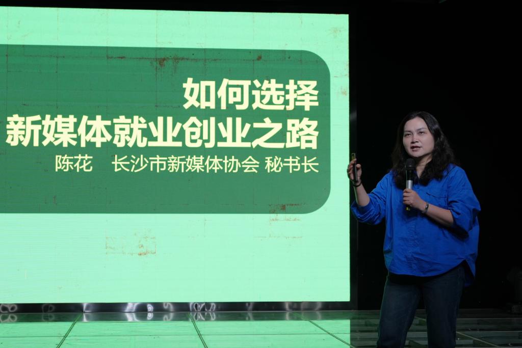 本次分享会邀请到的嘉宾有竞网集团联合创始人、长沙市新媒体协会秘书长陈花,甜老虎酱品牌内容负责人、长沙学院汉语言专业优秀毕业生罗楚风,MINEFM青年频道负责人范意。三位主讲人结合自身求职就业经历和一些身边故事,给在场各位同学们分享了从业经验以及求职技巧。现任长沙新媒体协会秘书长陈花特别指出“热爱的、想做的,才能做得更好”。在交流环节,同学们和分享人积极互动,了解了更多的实习就业问题。