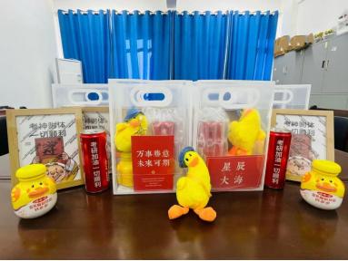 最后,学院党总副书记叶佳、学工办主任赵梓竣为备考学子送上精心准备的考研礼包,礼包中包括充满祝福的贺卡、传递勇气的挂件与相框、提供能量的饮品等。这些暖心的礼物饱含着学院对考研学子温暖的问候,寄托了对同学们金榜题名的美好祝愿。收到考研礼包的学子们备受鼓舞,纷纷表示感谢来自学院的关怀与祝福,将更加坚定考研信心,全力以赴备战考试。