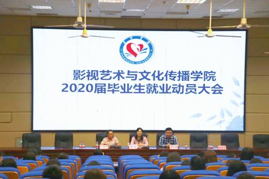 为增强我校毕业生就业意识,提高毕业生就业技巧,10月10日下午,影视艺术与文化传播学院在致远楼学术报告厅举行2020届毕业生就业动员大会。影视艺术与文化传播学院党总支书记胡嫔、副书记王艾红、副院长谭文鑫、各教研室主任、辅导员以及两位优秀校友受邀出席本次大会,影视艺术与文化传播学院16级全体学生到场聆听,会议由王艾红主持。